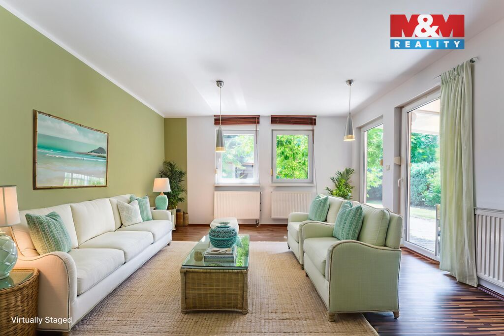 Nabízíme k prodeji moderní a pečlivě udržovaný rodinný dům v oblíbené a tiché části Chýně. Jedná se o kvalitní úspornou dřevostavbu s dispozicí 5+kk, dvěma koupelnami, komorou a celkovou užitnou plochou 113 m², rozloženou do dvou nadzemních podlaží. Dům je situován na pozemku o velikosti 284 m². Součástí domu je prostorná terasa s pergolou, ideální pro odpočinek a rodinné posezení, lodžie v 1.patře, dále praktická pochozí půda, zahradní domek a tři vlastní parkovací stání. Komfort bydlení zvyšují také předokenní rolety instalované v celém domě. Vytápění a ohřev vody zajišťuje plynový kotel, koupelny a chodbu navíc vytápí elektrické rohože. Celý dům je napojený na bezpečnostní službu Jablotron. Nemovitost se nachází ve velmi klidné lokalitě, která zajišťuje dostatek soukromí a zároveň dobrou dostupnost do Prahy i občanskou vybavenost v místě. Dům je ve výborném stavu a připraven k okamžitému nastěhování. Neváhejte a přijďte se podívat na místo, kde se budete cítit skutečně doma.