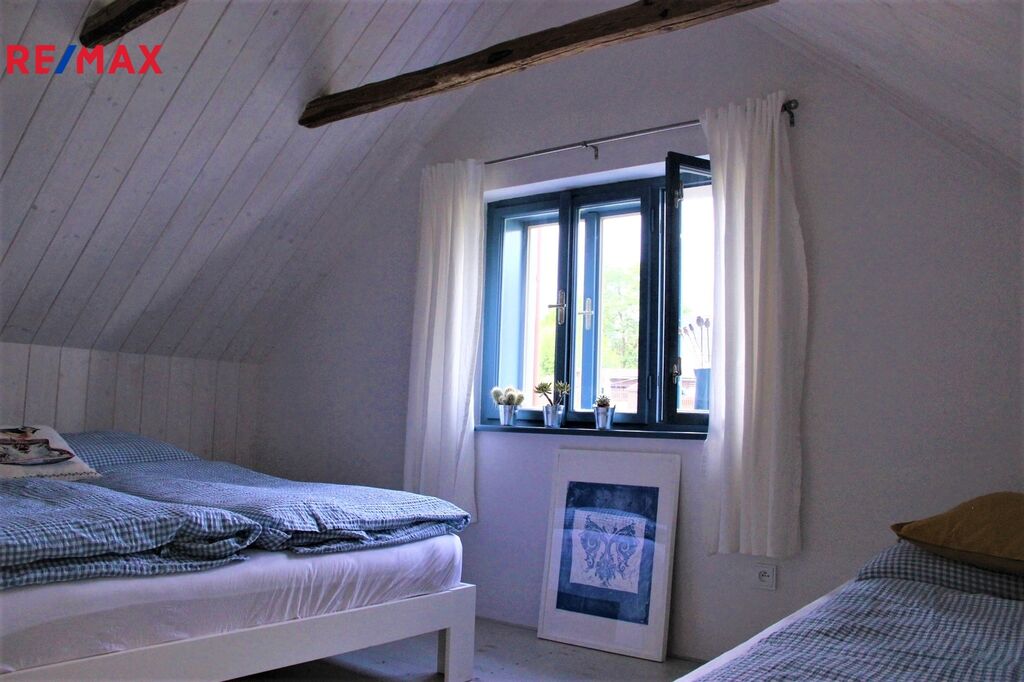 Do patra vedou točité schody, které ústí do dvou neprůchozích ložnic, každá s kapacitou až tří osob.