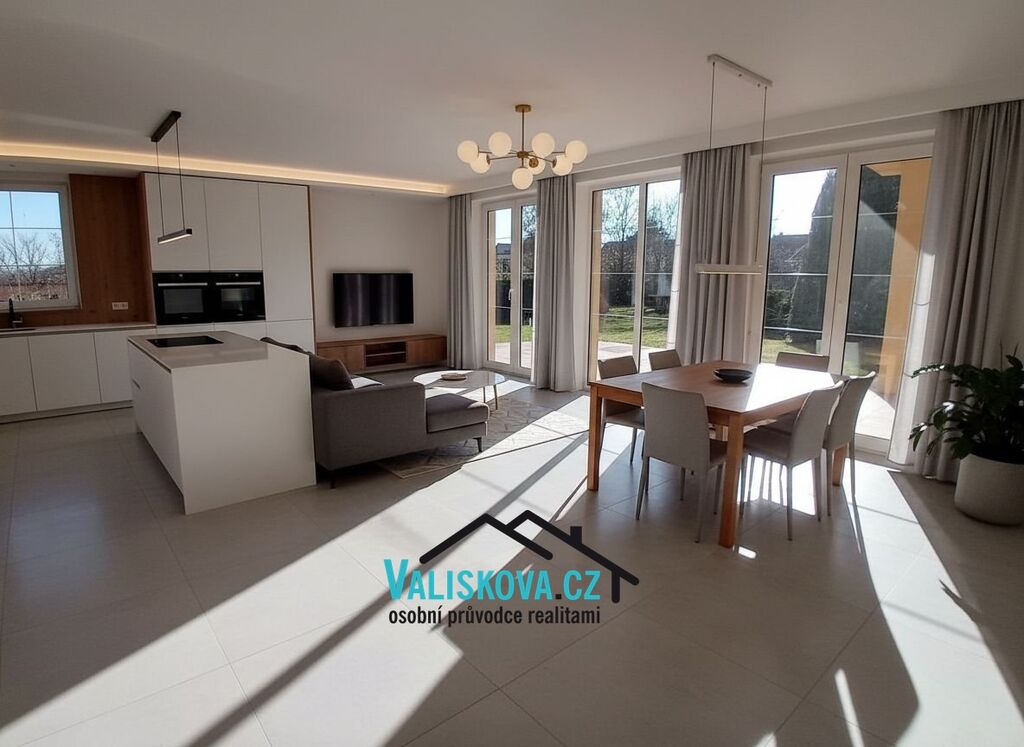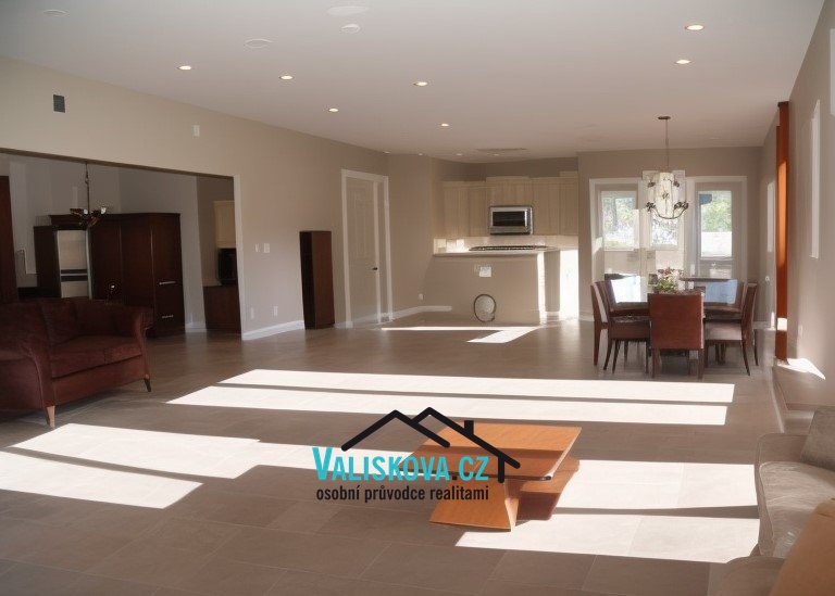 Prostor je designován tak, aby poskytoval veškerý komfort a luxus, který si můžete přát. Velkorysý obývací pokoj s jídelnou a propojenou kuchyní vytváří teplo a pohodlí pro každodenní život. Dům je obklopen prostornou zahradou s možností vybudování bazénu a vzrostlými stromy, které dodávají domu příjemnou atmosféru.