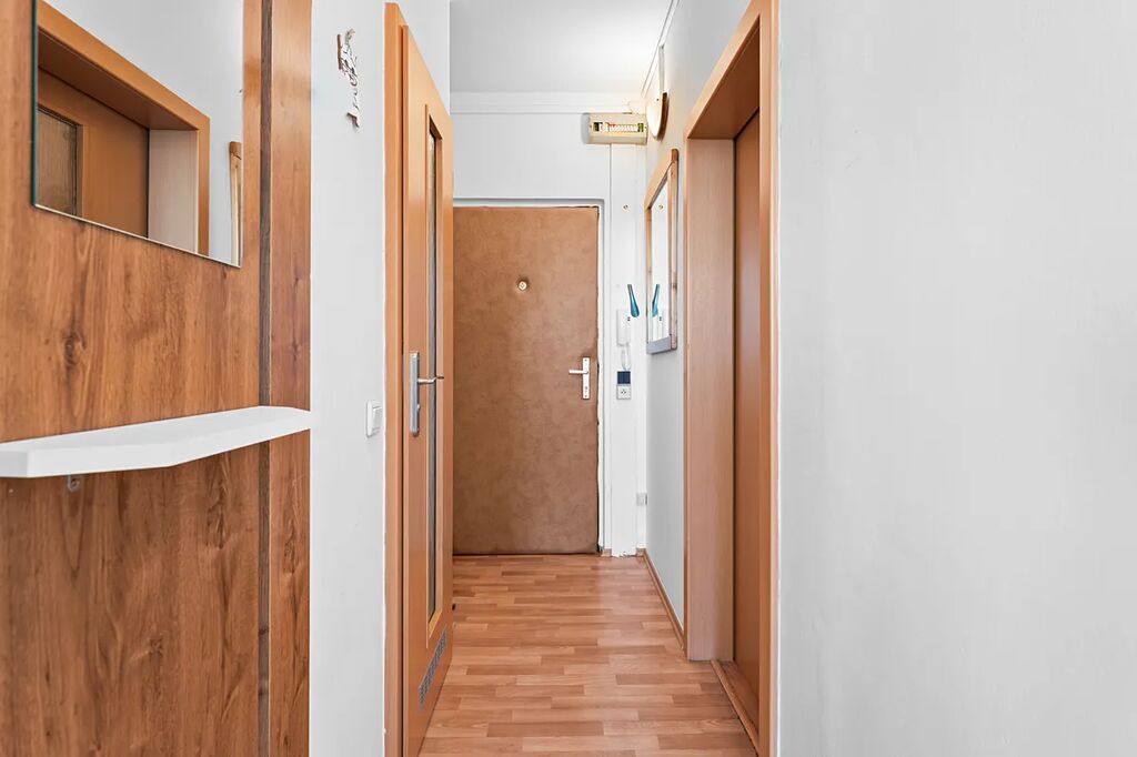 Dispozice bytu nabízí příjemné a vzdušné prostory s výhledem na okolní zeleň. Součástí bytu je také lodžie, kde můžete příjemně v klidu relaxovat. V bytě je k dispozici komora na patře, což poskytuje navíc úložný prostor pro vaše potřeby.