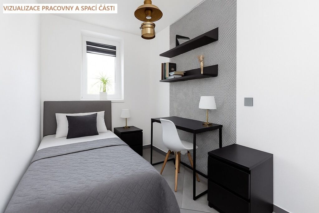 Atypická dispozice 2 + kk s možností jednoduché úpravy na 3 + kk posunutím SDK příčky nabízí flexibilitu pro pracovnu či menší ložnici.