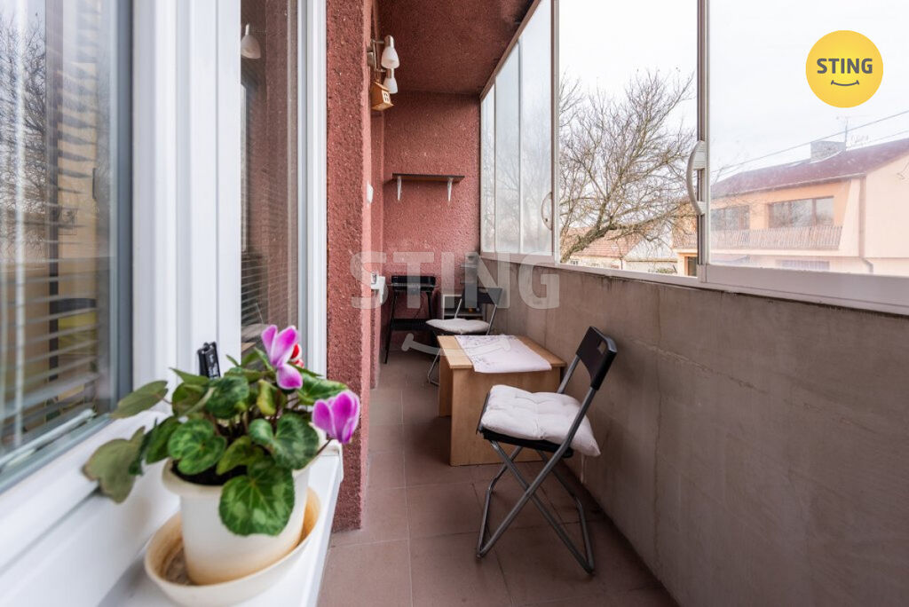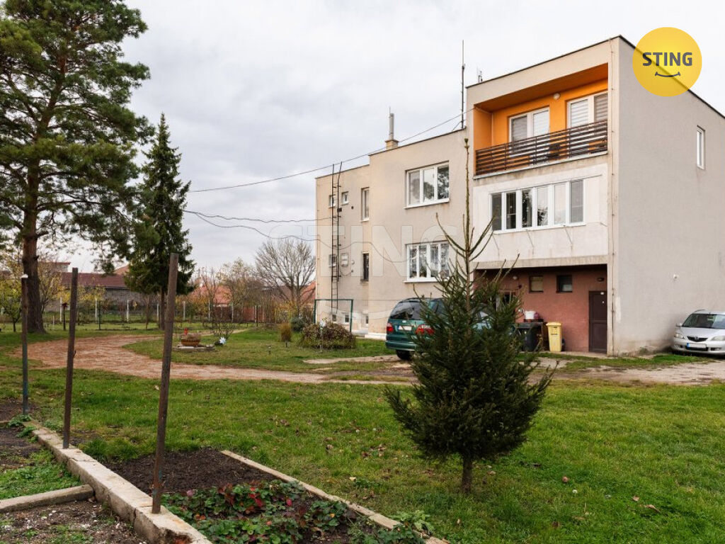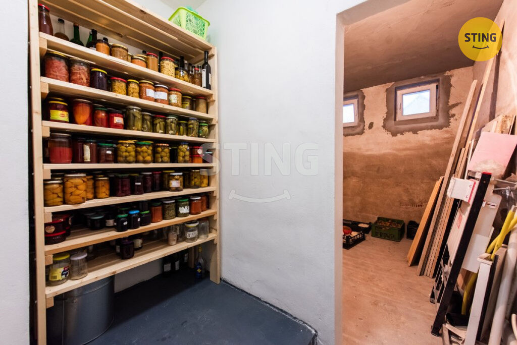 Dispozici tvoří prostorný obývací pokoj, kuchyně s jídelním koutem, dva další pokoje (z jdenoho je vstup na lodžii), koupelna, samostatné WC a předsíň. K bytu dále náleží dva sklepy, zahradní domek a možnost využívat malou zahrádku u domu. Parkování je možné přímo u domu.