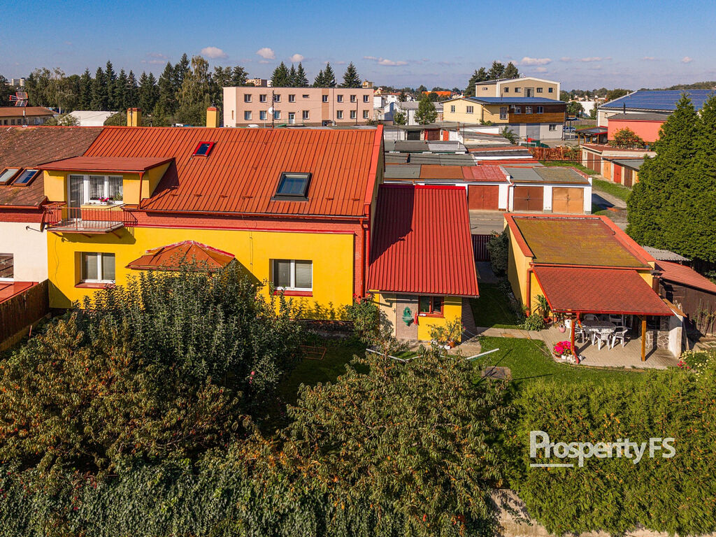 Pak vás jistě zaujme tento dvoupodlažní rodinný dvojdům se třemi bytovými jednotkami, dvěma garážemi a krásnou, velkou zahradou.