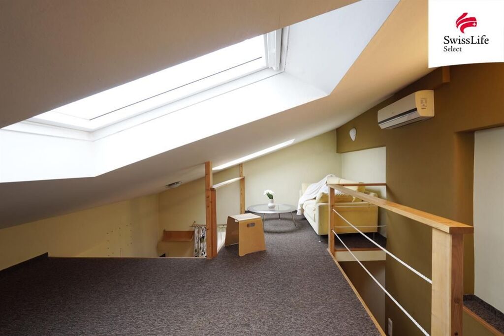 Byt nabízí pohodlné bydlení. Jedná se o velmi vkusně zařízeny byt 2+kk s vybaveným kuchyňským koutem. Z předsíně se dostanete do kuchyně a do obývacího pokoje v patře kde také najdete útulnou ložnici se střešním oknem s výhledem na noční oblohu. Z předsíně je též vstup do koupelny se sprchovým koutem a WC.