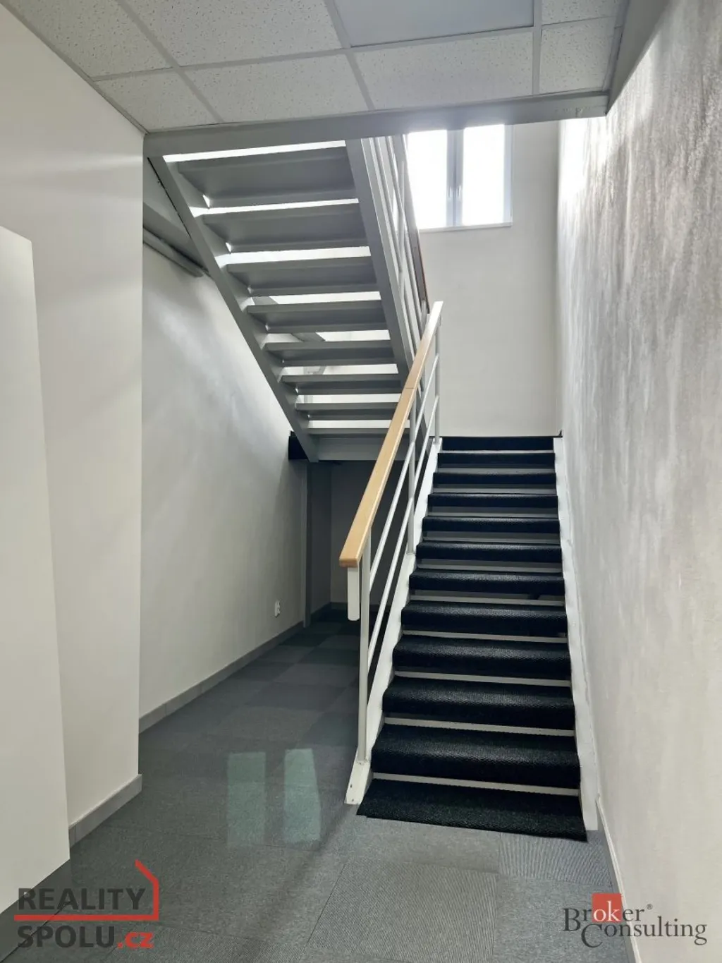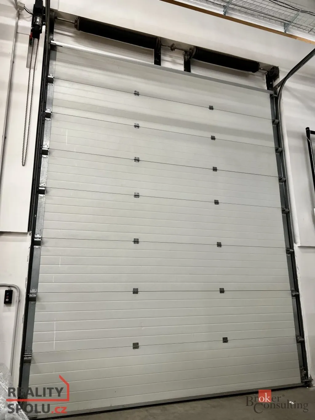 V přízemí se nachází skladovací/výrobní hala o výměře 610 m2, výška haly 8,8 m, se sekvenčními vraty o výšce 4,4 m na dálkové ovládání.