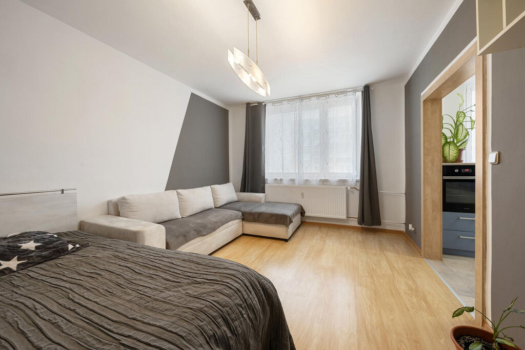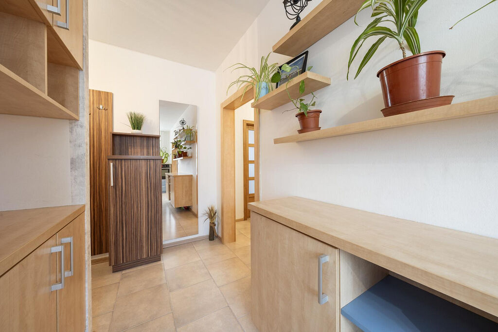 Samotný byt prošel v roce 2008 částečnou rekonstrukcí, při které bylo vyměněno zděné jádro. Všechny prostory jsou vybaveny plovoucí podlahou, která dodává bytu moderní vzhled a zároveň je snadno udržovatelná. V koupelně najdete dlažbu a obklady, které jsou odolné vůči vlhkosti a snadno se čistí.