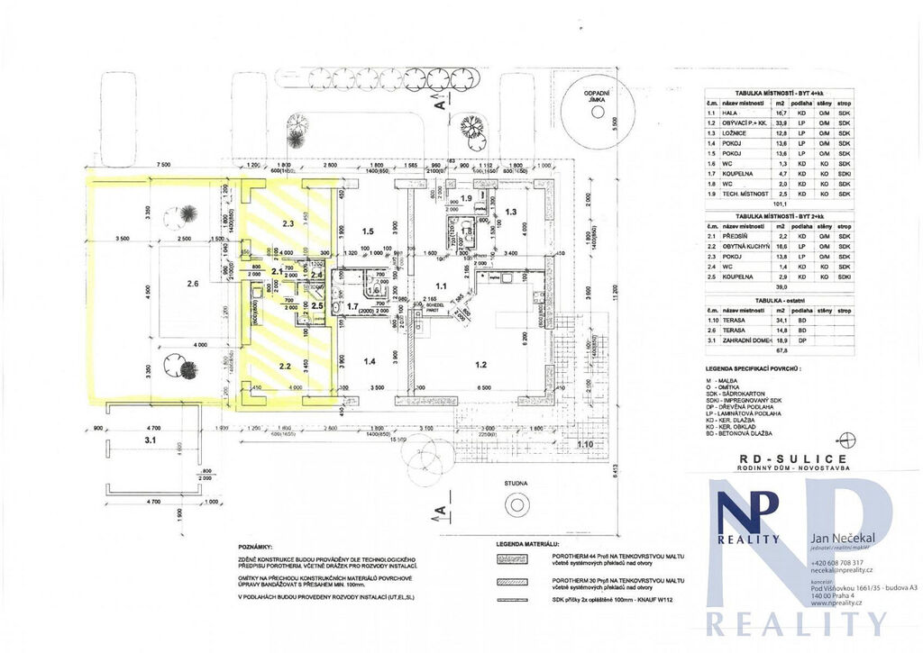 Nabízíme pěkný byt 2+kk o výměře 39 m² s terasou 10 m² a samostatnou zahradou 70 m² v přízemí jednopodlažní novostavby rodinného domu, který byl kolaudován před 5 lety. Vstup je zajištěný samostatným vstupem na oplocenou zahradou, ze které je vstup do bytu. Byt se skládá z předsíně 2,2 m², obývacího pokoje s kuchyňským koutem 18,6 m², ložnice 13,8 m², wc 1,4 m² a koupelny s umyvadlem a sprchovým koutem 2,9 m². Kuchyňská linka je vybavena sklo keramickou varnou deskou, horkovzdušnou troubou a digestoří. V bytě je podlahové vytápění na podlahách položená dlažba. K bytu náleží soukromá oplocená zahrada spolu s terasou. K bytu náleží dvě parkovací stání před domem. Klidné místo v zeleni na okraji obory na rozhraní obcí Sulice a Kostelec u Křížku. K nastěhování od 4.12. Prohlídky jsou možné. Nájemné 18.000 Kč + služby 3.000 Kč, kauce 18.000 Kč, provize RK 18.000 Kč + DPH. Zažádáno u majitele o dodání Průkazu energetické náročnosti budovy. Z důvodu jeho nedodání majitelem zveřejňujeme energetickou třídu G.