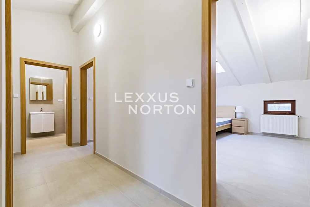 Tento mezonet k pronájmu se sestává ze 2 pater. Vstupní patro dispozičně nabízí k užívání chodbu, prostorný obývací pokoj včetně jídelního prostoru a koupelnu. Horní patro nabízí 3 ložnice a koupelnu se sprchovým koutem a toaletou. Možnost pronájmu parkovacího stání za měsíční poplatek 2 548 Kč.