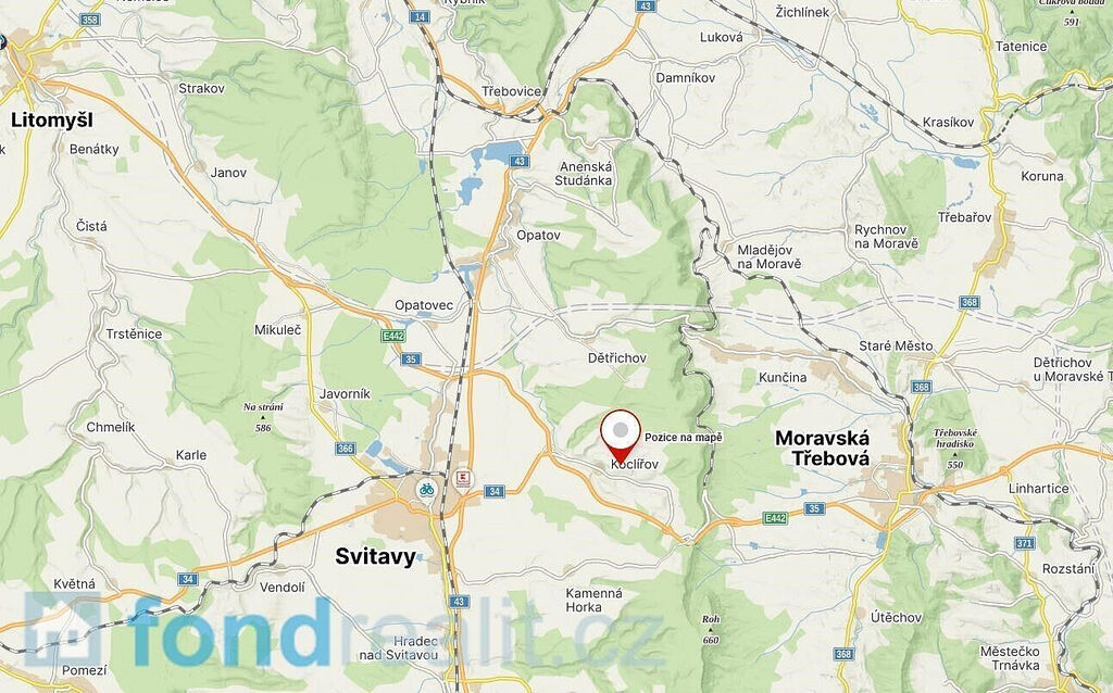 Předmětem prodeje je pozemek o výměře 4 440 m² v Koclířov. V katastru nemovitostí je veden jako trvalý travní porost. Jedná se o výhodnou investici, neboť pozemek navazuje na zastavitelnou plochu.