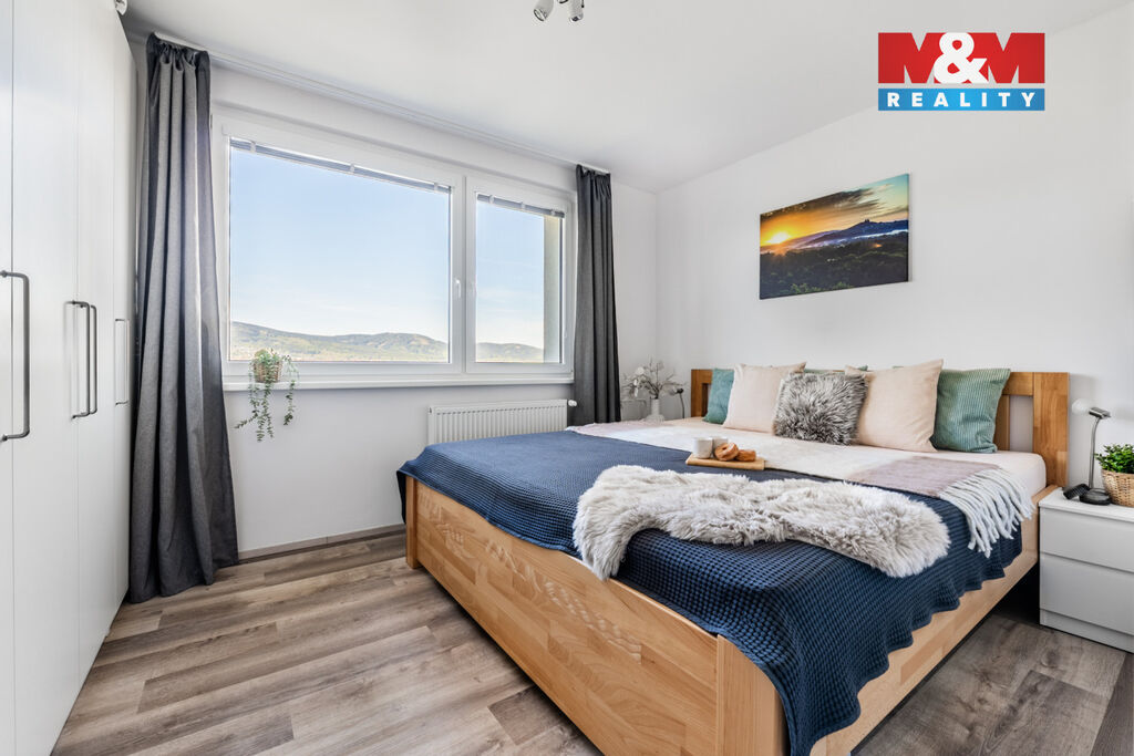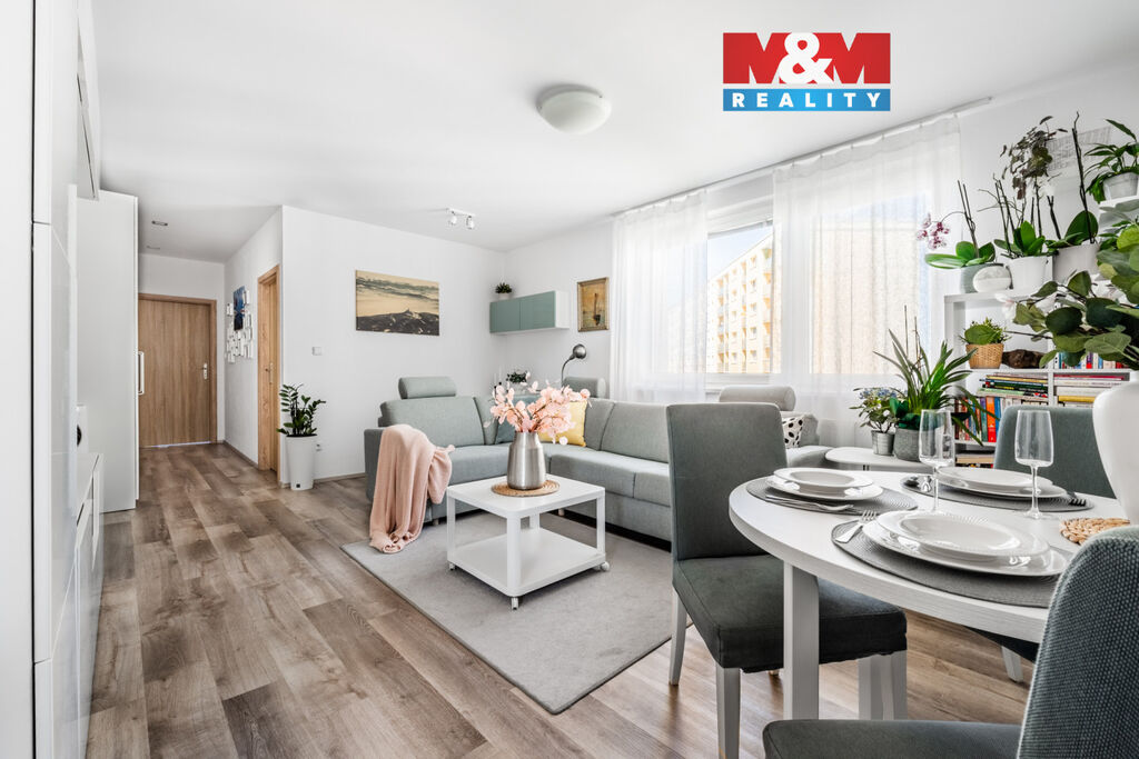 Nabízíme k pronájmu prostorný byt 3+1 o užitné ploše 63 m², nacházející se v klidné části Liberce VI-Rochlice, ul. Ježkova. Byt prošel modernizací – propojení kuchyně s obývacím pokojem působí vzdušně a dřevěné tóny dodávají bytu útulnost i teplo domova. Zbylý design odpovídá současným trendům, tedy nadčasová bílá a světlá barva. Kuchyň je plně vybavena vestavěnými spotřebiči. V bytě není postel, gauč, TV stolek a pračka. Dispozice bytu zahrnuje prostorný obývací pokoj uprostřed bytu, dále kuchyň, dvě ložnice, koupelnu a samostatné WC. Lokalita nabízí veškerou občanskou vybavenost, včetně obchodů, škol a veřejné dopravy. K bytu náleží sklepní kóje.