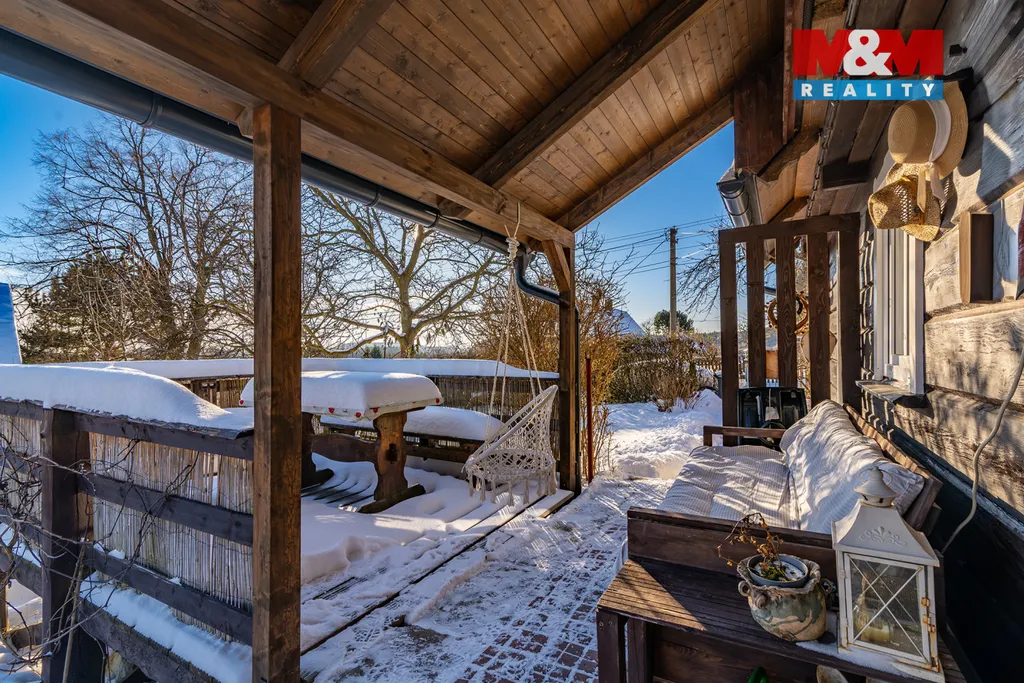 Vytápění zajišťuje automatický kotel na pelety řízený WiFi termostatem, ohřev vody bojlerem. Udržovaná oplocená zahrada nabízí terasu, kryté posezení i prostor pro relaxaci či vířivku.