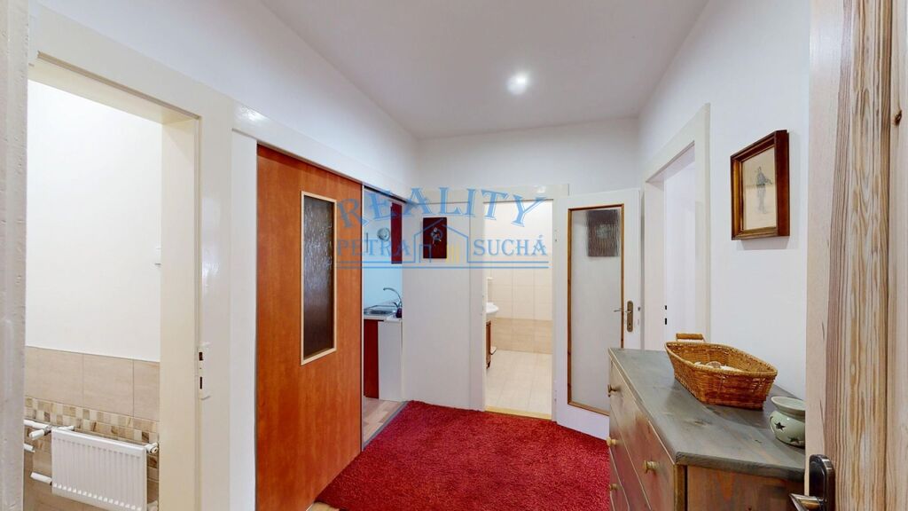 bytová jednotka o dispozici 2+1 – kuchyně s komorou, obývací pokoj s krbovými kamny na tuhá paliva Romotop Gerona, ložnice, nově zrekonstruovaná koupelna se sprchovým koutem a samostatná toaleta