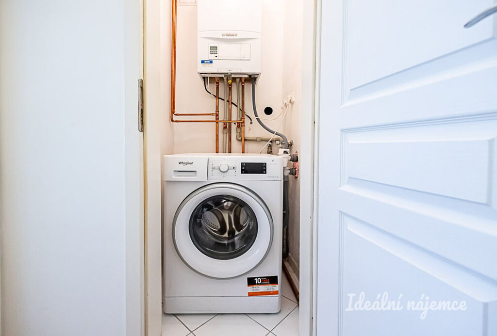 Kuchyně je plně vybavena: lednice s mrazákem, elektrická a mikrovlnná trouba, varná deska, digestoř, myčka a barové posezení. Obývací část nabízí prostorný a světlý prostor s pohodlnou postelí. Koupelna je vybavena vanou, umyvadlem a toaletou, pračka se nachází v samostatné komoře.