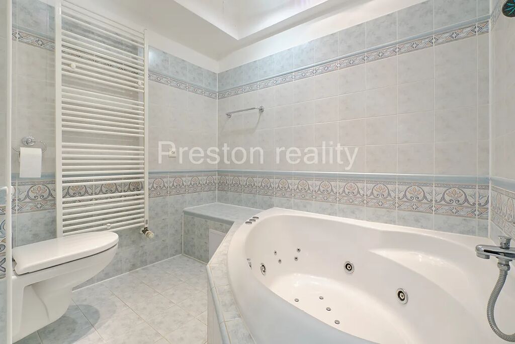 Byt se skládá ze třech neprůchozích místností: obývacího pokoje (19 m2 – na plánku místnost č. 1), místnosti s kuchyňskou linkou (18 m2), přičemž tyto dva pokoje jsou na úrovni snížené terasy u domu a jsou dostatečně prosvětleny okny. Kuchyňská linka je vybavena indukční sklokeramickou deskou, elektrickou troubou, digestoří a myčkou a volně stojící lednicí (není na fotografii). Poslední místnost je typickou suterénní místností s malými okny (15 m2 - místnost č. 3). Součástí bytu je prostorná koupelna (8 m2) s rohovou hydromasážní vanou a sprchovým koutem, WC a pračkou. Šatní skříň na fotografii z chodby byla odvezena. Byt je vybaven pračkou (v koupelně) a sušičkou (v technické místnosti).
