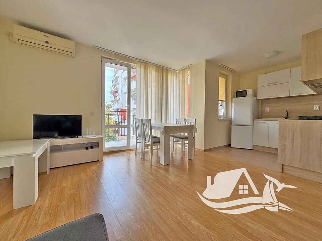 Byt tvoří prostorný obývací pokoj s kuchyňským koutem, samostatná ložnice, koupelna s toaletou a terasa s výhledem do zeleně. Interiér je plně vybavený a připravený k okamžitému užívání, takže si můžete užívat moře hned od prvního dne.