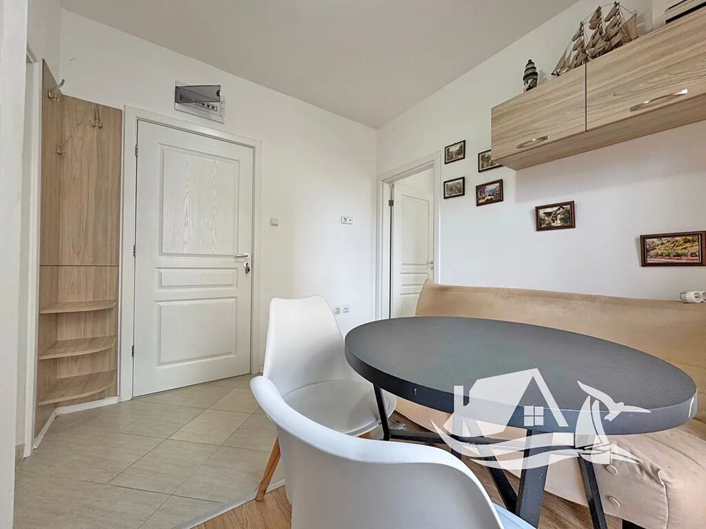 Tento útulný apartmán 2+kk o celkové ploše 35 m² se nachází ve 2. patře elegantního komplexu Romans Marine, který je situován v klidné jižní části Slunečného pobřeží. Nabízí obývací pokoj s kuchyňským koutem, samostatnou ložnici, koupelnu s toaletou a balkon, ideální pro ranní kávu nebo večerní sklenku vína. Byt se prodává kompletně zařízený a vybavený, takže stačí otevřít dveře a užívat si svůj nový domov u moře.