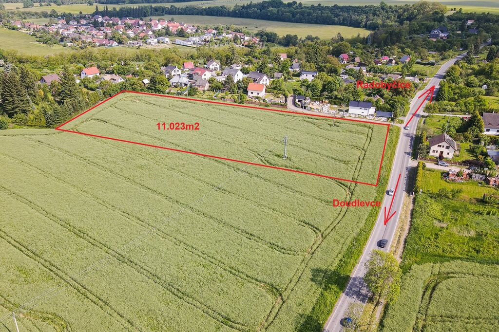 Pozemky o velikosti 11023m² se nacházejí u příjezdové komunikace směrem z Doudlevec do Radobyčic, aktuálně jsou vedené jako orná půda. Je však podaná žádost u příslušného úřadu o změnu územního plánu se záměrem výstavby rodinných domů vzhledem k povaze lokality.