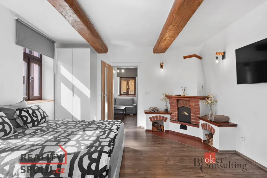 V přízemí najdete apartmán o dispozici 2+kk a o výměře 47,94 m², který je kompletně zrekonstruovaný, moderně zařízený a plně automatizovaný. Zůstává také plně vybaven a je tak připravený k okamžitému užívání, aktuálně úspěšně funguje v krátkodobých pronájmech. Nový majitel tak může pokračovat v zaběhnutém provozu, ať už formou krátkodobého či dlouhodobého pronájmu. V prvním patře se nachází druhý byt o dispozici 2+kk a velikosti 47,4 m², který by zasloužil rekonstrukci a nabízí tak možnost úprav podle vlastních představ.
