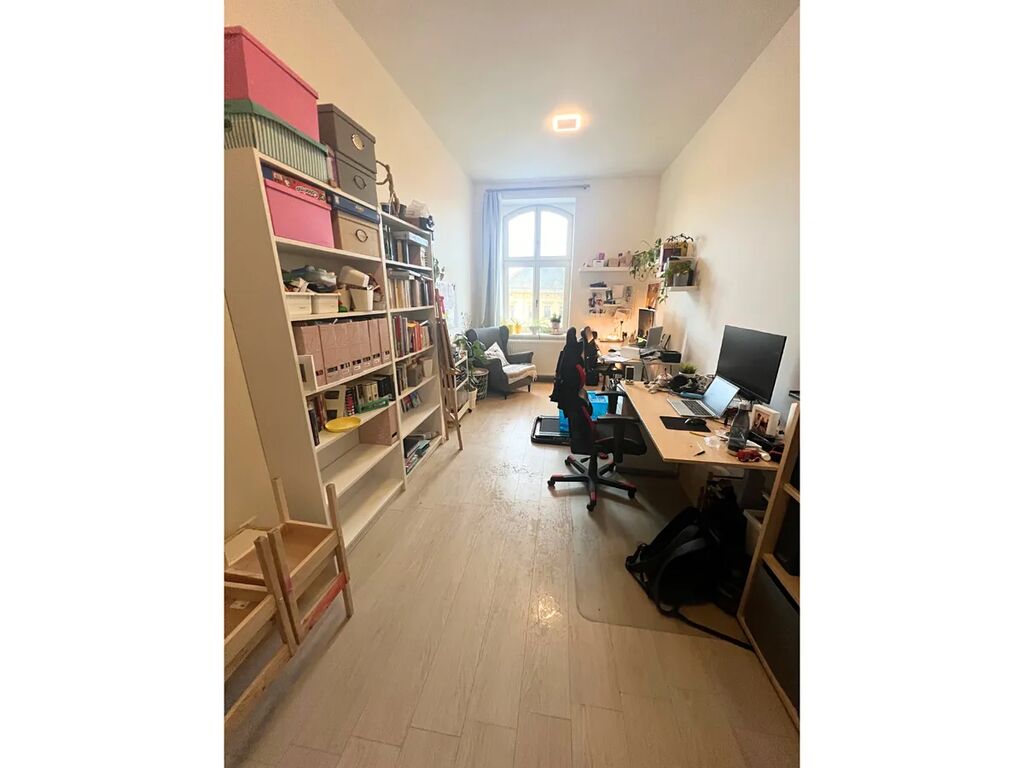 Byt je velmi světlý, slunný a klidný, s výhledem jak do ulice, tak do vnitrobloku.
