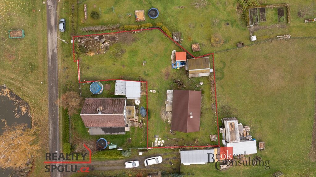 Celková plocha pozemku je 874 m2, z toho zastavěná plocha domu činí 70,35 m2. Pozemek vám tak poskytne dostatek prostoru pro posezení, dětské hřiště nebo menší zahrádku. Dům je napojen na elektřinu, vodu a kanalizaci.