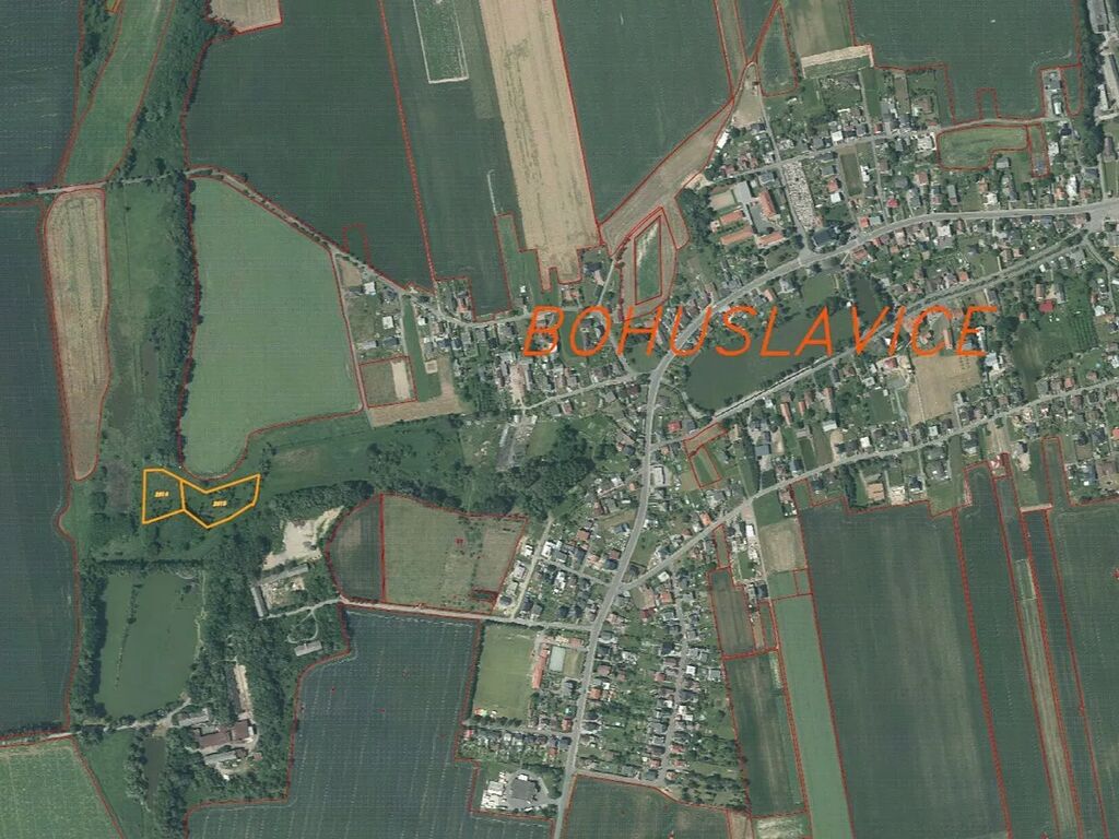 Předmětem dražby jsou dva pozemky o celkové výměře 8 942 m2 v obci Bohuslavice, na