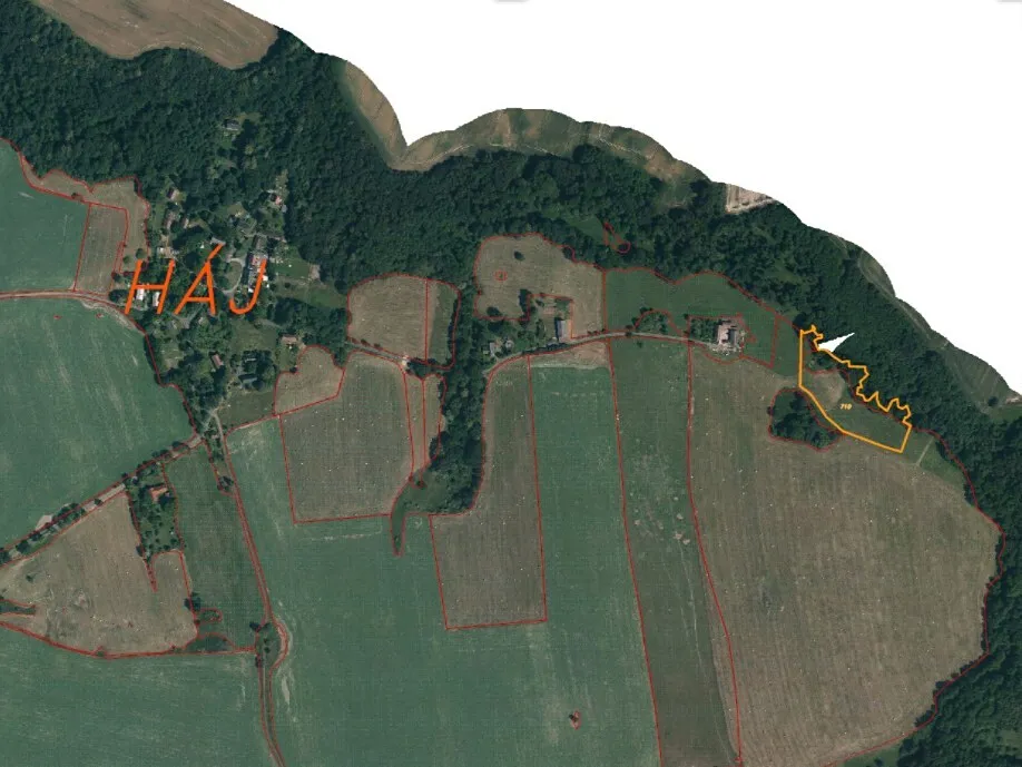 Předmětem dražby je pozemek o výměře 10 693 m2 v osadě Háj, část obce Habartice v
