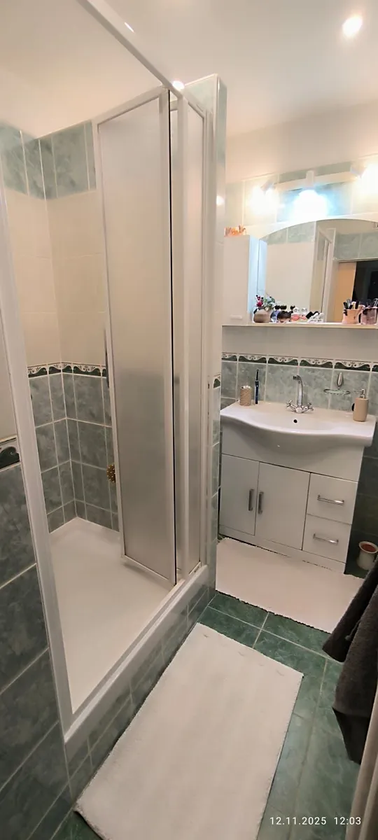 V předsíni je prostorná šatní skříň na míru a praktická komora s dveřmi.