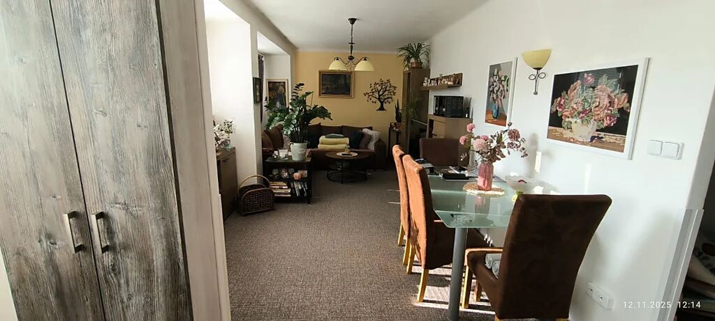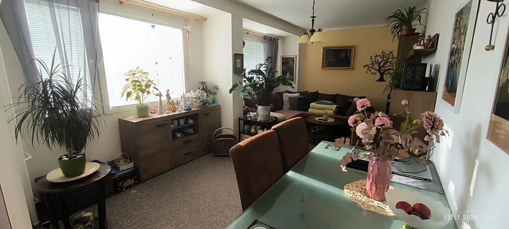 Byt disponuje prostorným obývacím pokojem s 2 okny (možno rozdělit na 2 pokoje) o délce 7 m.