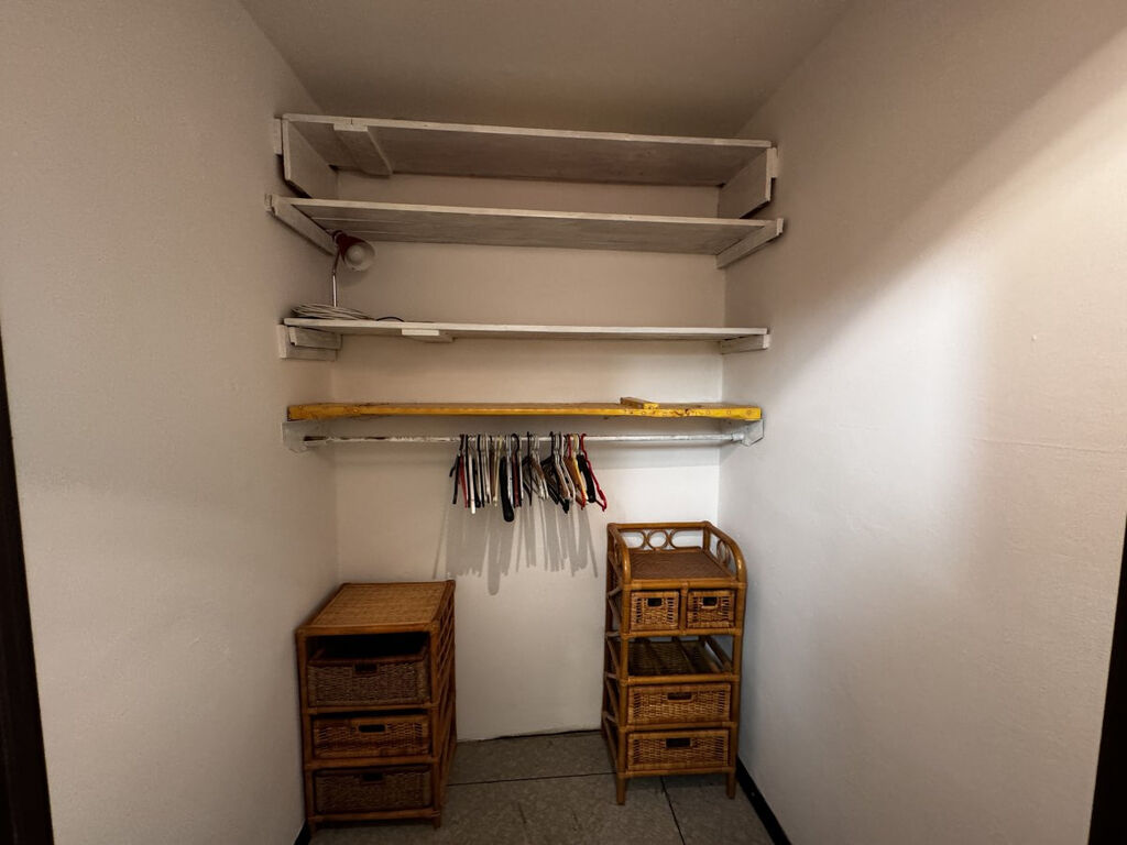 Byt se nabízí částečně vybavený. Kuchyně disponuje elektrickou troubou a digestoří. Obývací část je zařízena komodami a knihovnou. Druhý pokoji je prázdný. V koupelně je vana, umyvadlo. Toaleta je umístěna samostatně.