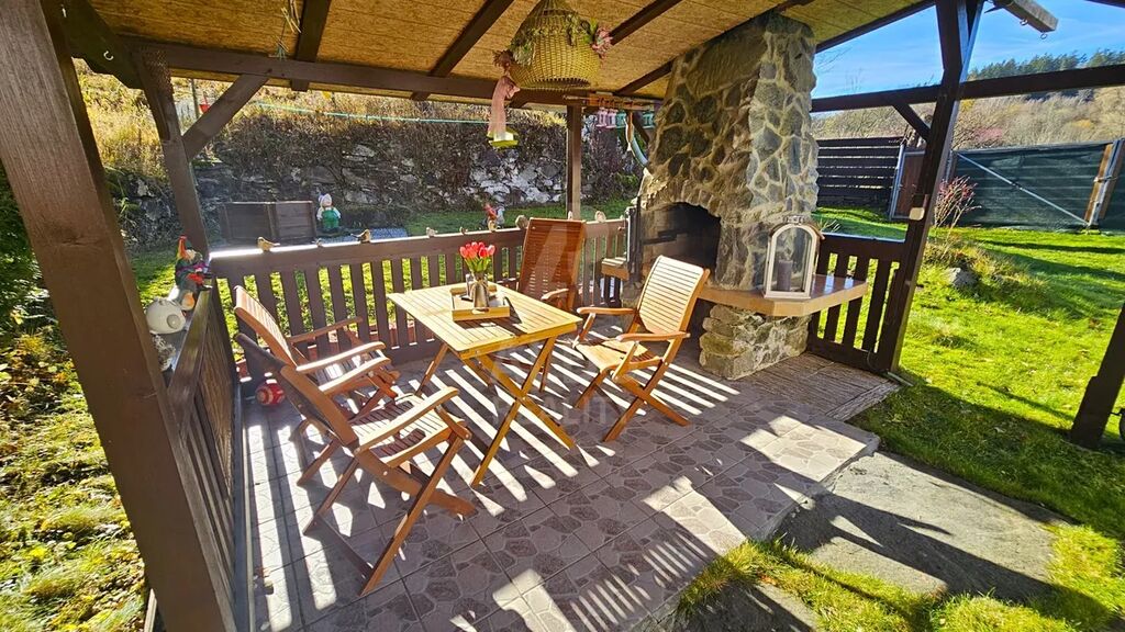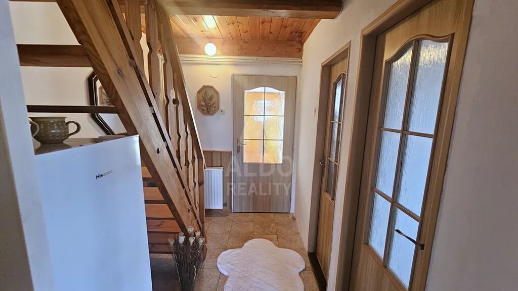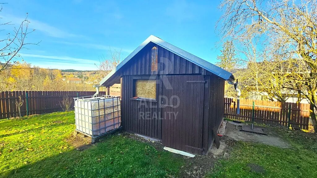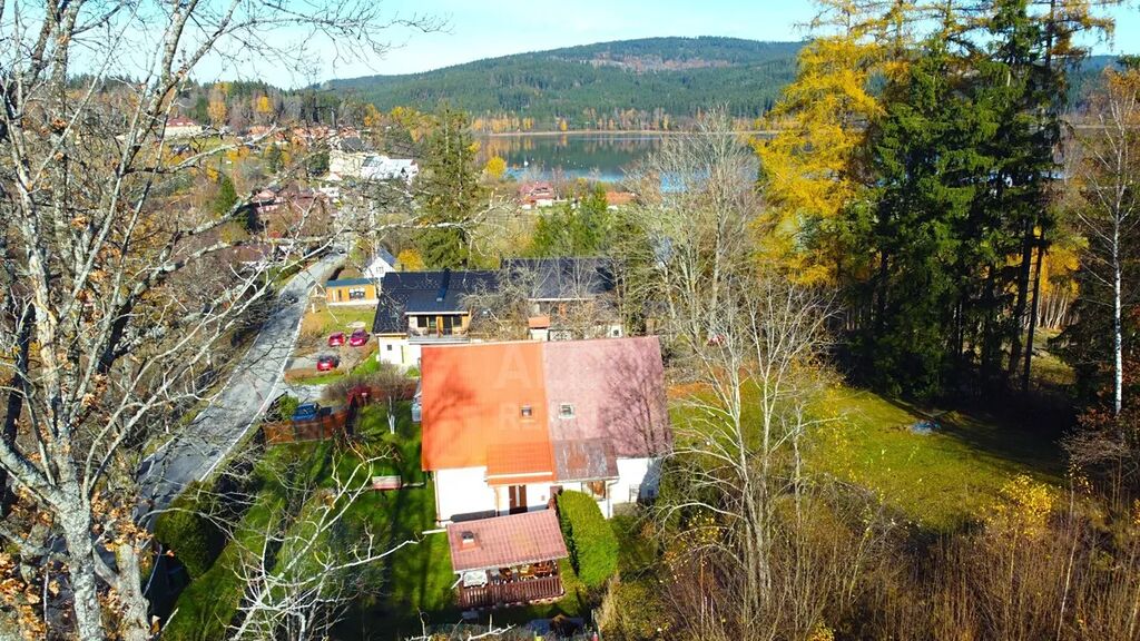 V exkluzivním zastoupení majitele, nabízíme k prodeji krásnou zděnou chatu u Lipna. Jedná se o polovinu dvoj-chaty. Vnitřní situace je 2+kk s terasou o velikosti 15 m2, přímo přístupnou z obývacího pokoje. V přízemí chaty je veranda, chodba, z níž je vstup do koupelny s WC, kuchyně, obývacího pokoje a schodiště do podkroví. V podkroví je velká ložnice se vstupem na balkon. Balkon je orientován na západ a je z něj krásný výhled na CHKO Šumava. V případě potřeby je možno velkou podkrovní ložnici rozdělit na dva menší pokoje a zvětšit tak užitnou část na 3+kk. Vytápění je řešeno krbovými kamny s výměníkem a rozvodem do radiátorů. Chata má nově udělanou střešní krytinu z profilovaného plechu. Z jižní části, přímo před verandou je prostorná venkovní pergola s velkým krbem a zavedenou elektřinou. Voda je z vlastního vrtu, který slouží pro obě chaty. Dále je na zahradě stará kopaná studna. Ohřev vody je řešen bojlerem. Odkanalizování je svedeno do septiku. Pod terasou je prostorný sklad na nářadí. Na pozemku je také dřevěná kolna o výměře cca 15 m2. Jedná se o velmi udržovanou chatu na krásném místě vzdálenou cca 400 m od Lipenské přehrady. Pro více informací mne neváhejte kontaktovat.