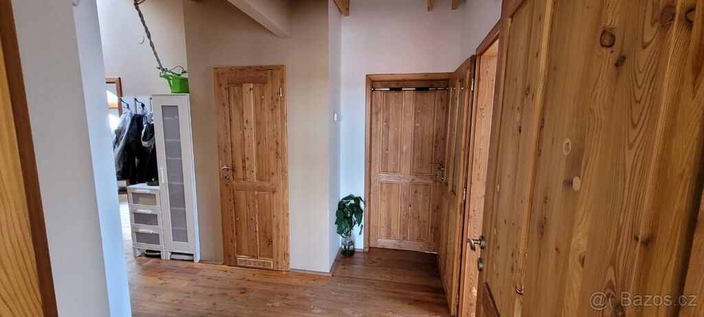 Podlahy jsou z modřínového dřeva, nechybí příprava na krb a dostatek úložných prostor.