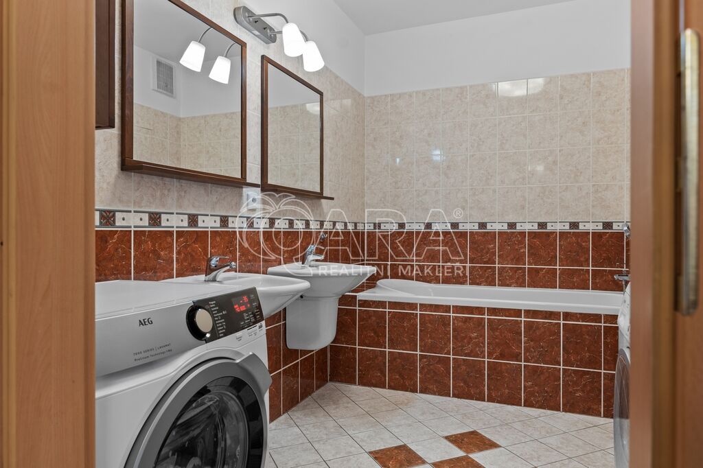 Nadstandardní byt disponuje podlahovou plochou 91 m² + terasou o rozloze 100 m², sklepem a dvěma garážovými stáními.