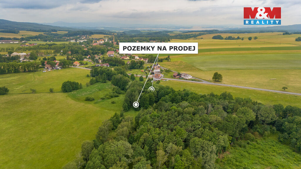 Na klidném okraji Dětřichova je k prodeji soubor dvou pozemků o celkové ploše 4 178 m², které kombinují slunnou louku (1 047 m²) a lesní porost (3 131 m²). Tento prostor nabízí maximální soukromí a přímý kontakt s přírodou.