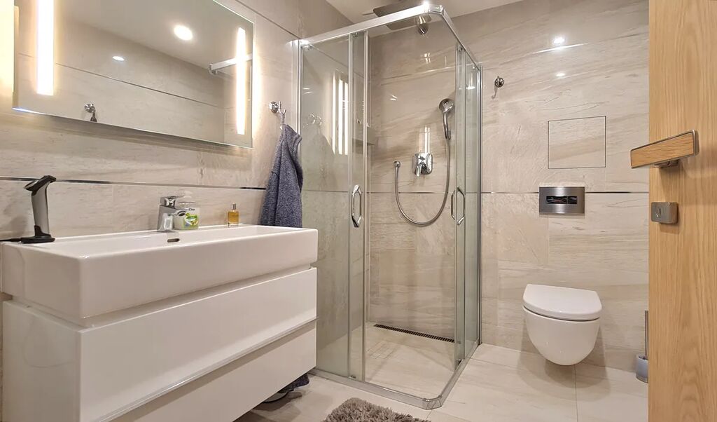 V bytě najdete vše, co potřebujete: prostornou komoru, tři ložnice, koupelnu s vanou i sprchovým koutem a samostatné WC pro hosty.