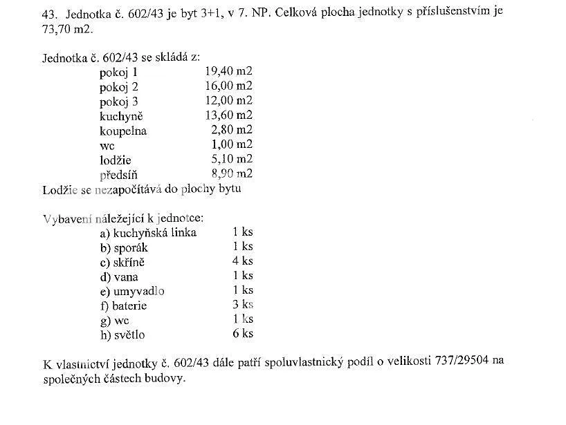 Byt disponuje dvěma ložnicemi (jedna je osazena dvěma dveřmi a je ji případně možné rozdělit příčkou a změnit tak dispozici bytu na 4+1),obývacím pokojem a samostatnou kuchyní. Z obývacího pokoje je vstup na zasklenou lodžii. K bytu náleží sklepní koje. Město Cvikov má vyřešenou infrastrukturu v bezprostřední blízkosti bytu se nachází obchody, školy, zdravotnické zařízení a veřejná doprava: