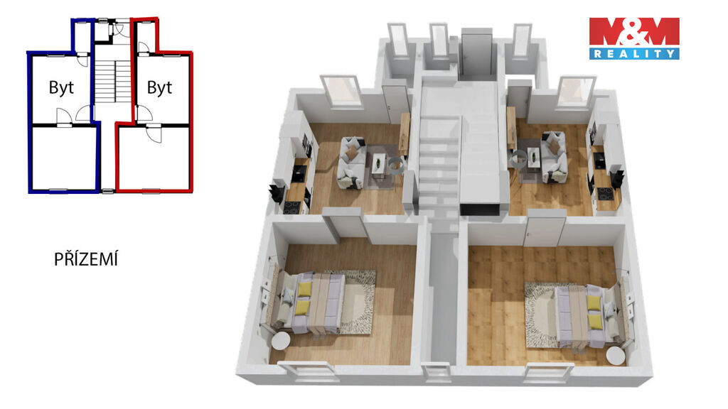 Nabízíme vám jedinečnou investiční nemovitost v Lounech, která představuje výbornou příležitost pro investory i zájemce o stabilní výnos. Dům aktuálně nabízí tři bytové jednotky 2+kk, každou o velikosti 46 m², a jeden byt 3+kk o velikosti 55 m². V půdních prostorách je možné vybudovat další dvě jednotky 2+kk, čímž lze celkový počet bytů rozšířit až na šest.