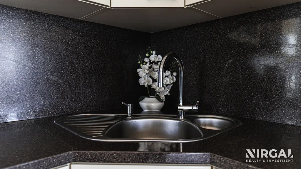 Byt s bezbariérovým přístupem je umístěn v šestém podlaží sedmipatrového, nadstandardně vybaveného domu a je velice vkusně zařízen.