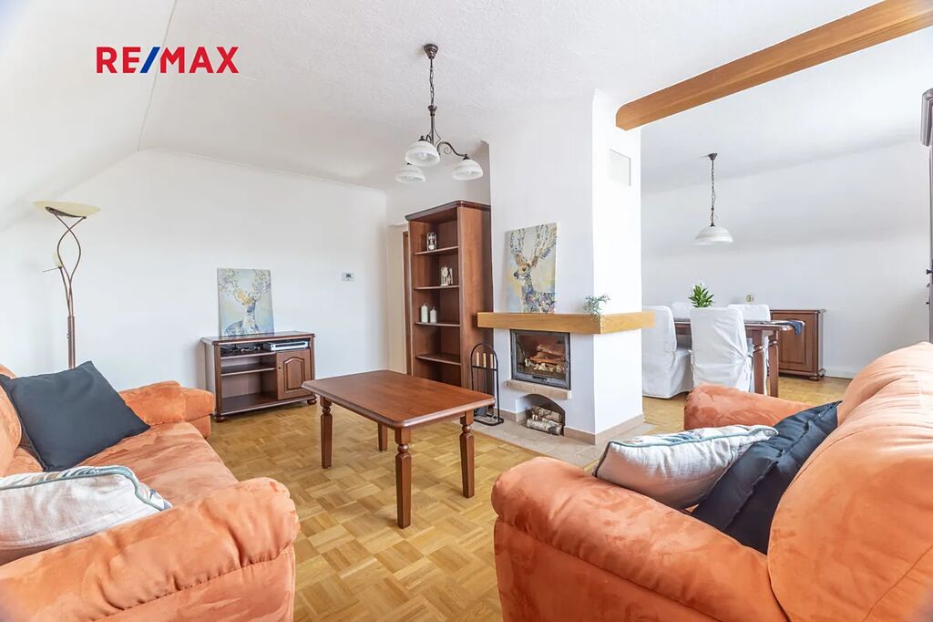 2. nadzemní podlaží: Byt 4+1 (98 m²) po rekonstrukci, s výhledem na Prahu a do zahrady. Ložnice je vybavena vestavěnými skříněmi, velký pokoj s úložným prostorem, obývací pokoj s krbem, oddělená jídelna, samostatná kuchyň a koupelna s vanou.