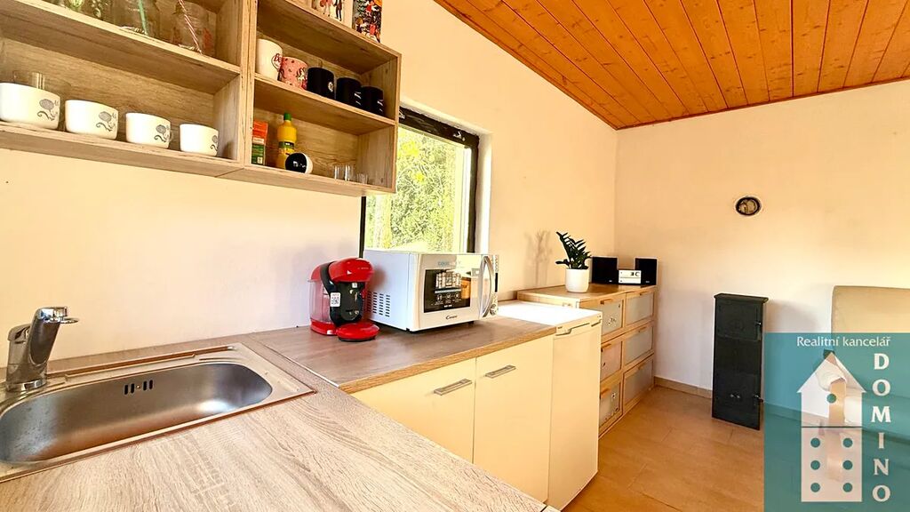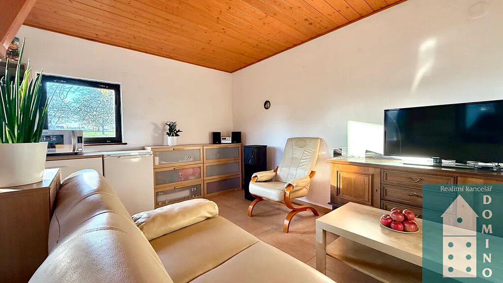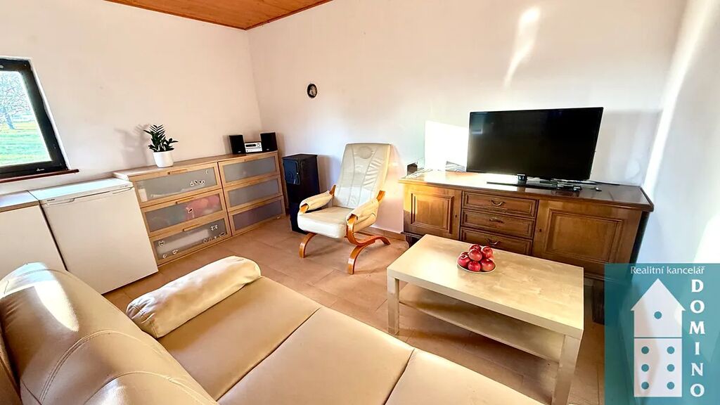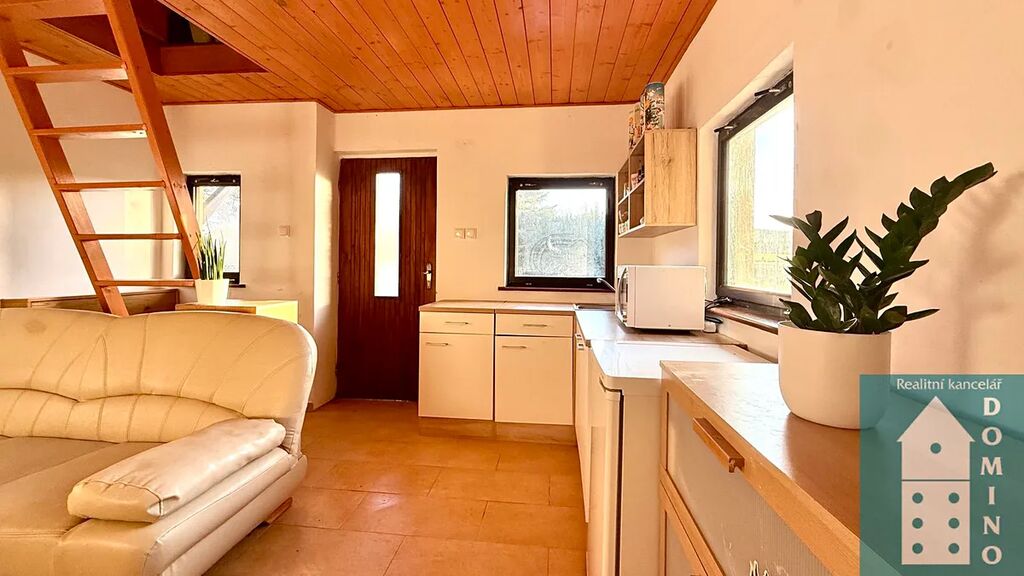Nabízíme vám k prodeji zděnou, podsklepenou chatu s dispozicí 2+kk, s dřevěným podkrovím a s krásnou zahradou v obci Lhotka u Kroměříže. Zastavěná plocha činí 32 m2.