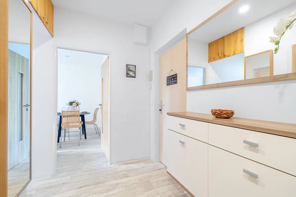 Předsíň: vestavěná skříň, botník, velké zrcadlo, další úložný prostor.