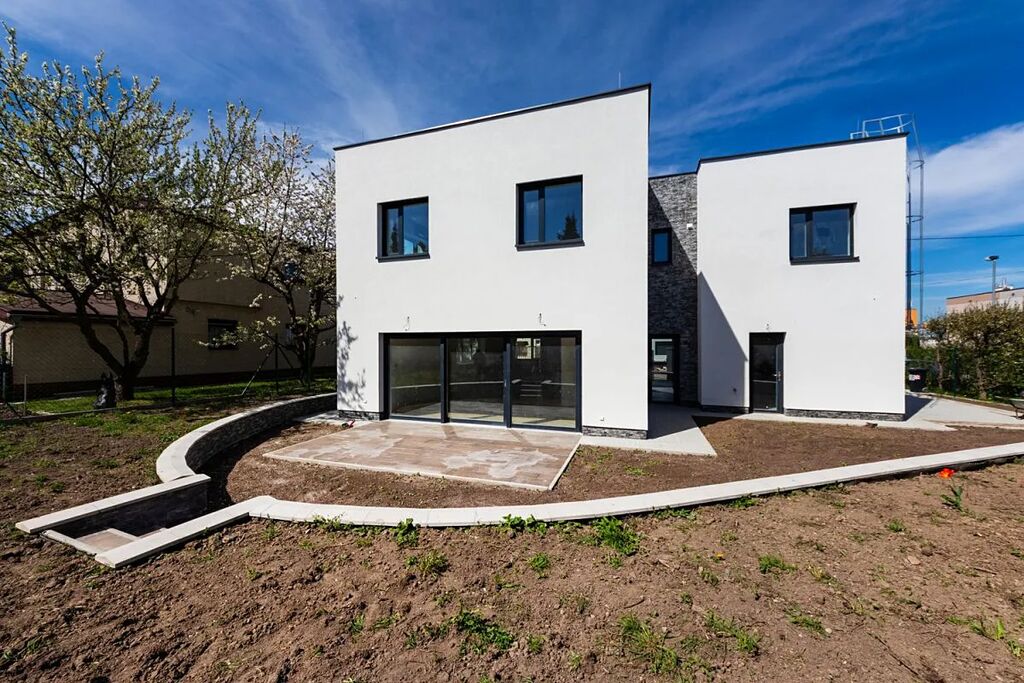 Nová moderní vila dispozičně řešená jako 5+kk se dvěma koupelnami, garáží a kompletně realizovanou zahradou včetně venkovní terasy.