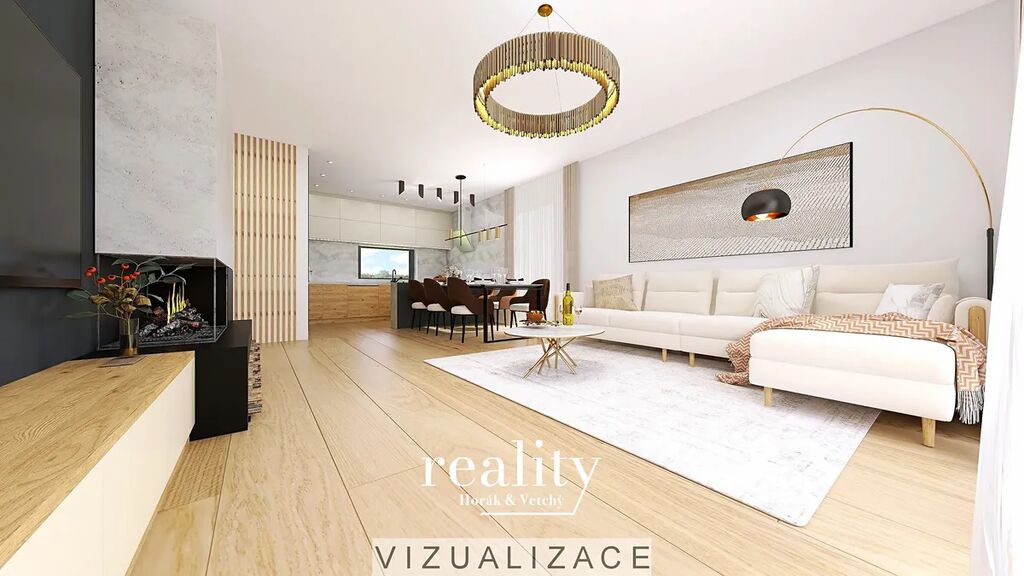 Jedná se o moderní jednopodlažní dům typu bungalov s dispozicí 4+kk o užitné ploše 131m2 + 36m2 garáž pro 2 vozidla. Aktuálně se dům prodává jako hrubá stavba na dokončení, po dohodě s investorem je možné dům dokončit dle níže uvedeného standardu. Vlastní RD je navržen tak, aby svým obyvatelům poskytl kvalitní a úsporné bydlení s dostatkem prostoru. Nízkoenergetický standard zaručí moderní 300mm zdivo s plánovaným kontaktním zateplením z EPS tloušťky 200mm, zateplená podlaha i strop, plastová okna s trojskly a podlahové teplovodní topení s tepelným čerpadlem DeDitrich, ohřívající současně i TUV. K dispozici je i komín k případné instalaci krbových kamen.