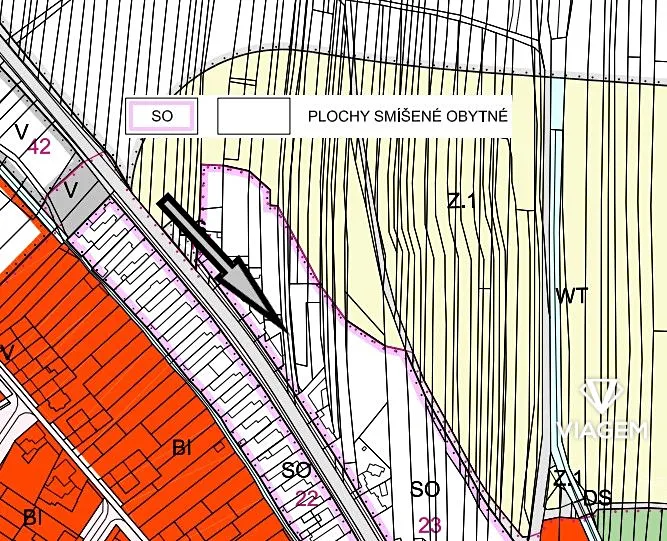 Pozemek je dle územního plánu veden jako stavební, což z něj činí zajímavou investiční příležitost do stavebních metrů. V současné době je díky své šířce cca 4 metry vhodný především pro využití jako zahrada, rekreační pozemek nebo odpočinková plocha.
