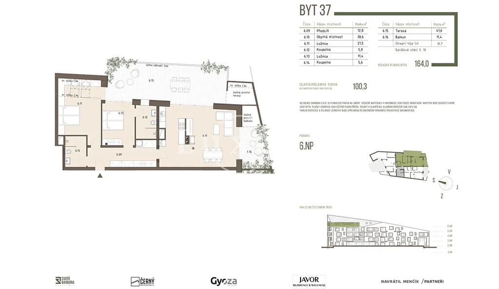 Nabízíme k prodeji apartmán v projektu Rezidence Svatá Barbora. Apartmán o dispozici 3+kk a podlahové ploše 100,3 m2 s terasou 41,6 m2 a balkonem 11,4 m2 se nachází v 6. NP novostavby s plánovaným dokončením ve 4. čtvrtletí roku 2026.