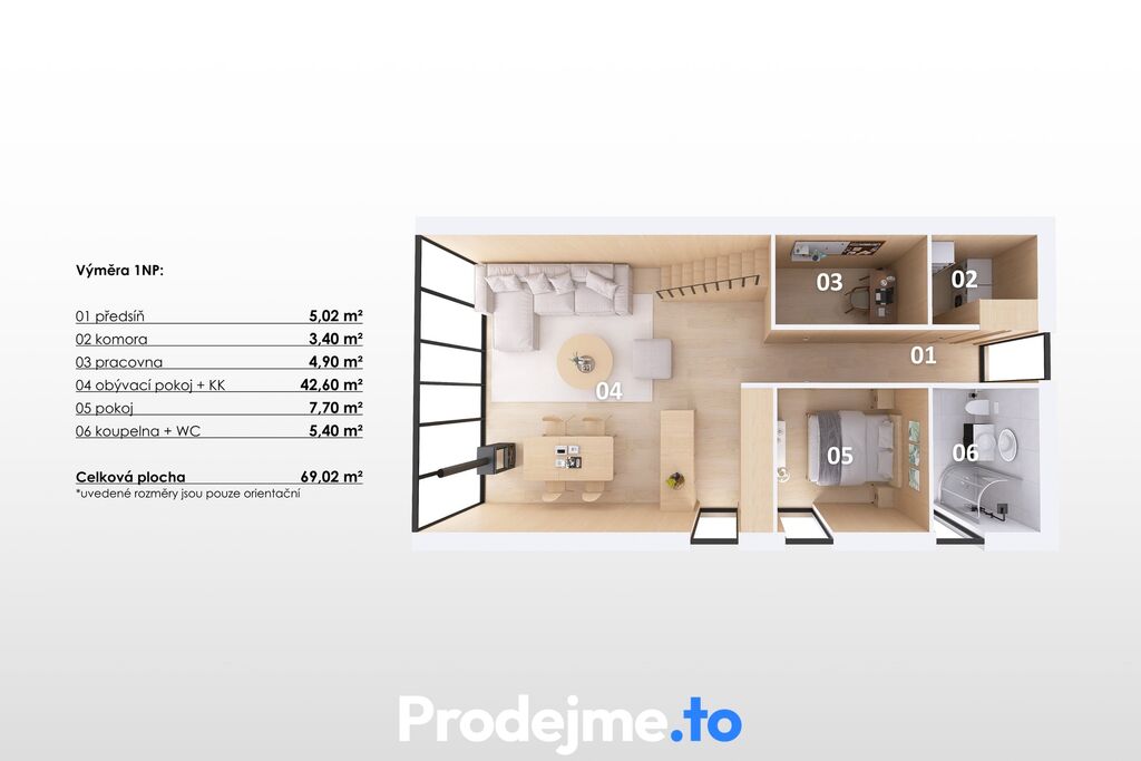 Uvnitř vás čekají dvě koupelny, teplovodní podlahové vytápění s elektrokotlem a krbová kamna, která večer vykouzlí tu pravou atmosféru. Plně vybavená kuchyň včetně vestavěné myčky ladí s promyšleným interiérem, klimatizace a rekuperace zase zajišťují čerstvý vzduch i příjemnou teplotu po celý rok. Každý centimetr prostoru má svůj smysl – nechybí ani chytré úložné prostory.