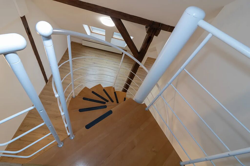 Byt je atypický i díky místnosti umístěné v samostatné rohové věžičce na střeše domu, která nabízí naprosto výjimečnou atmosféru.