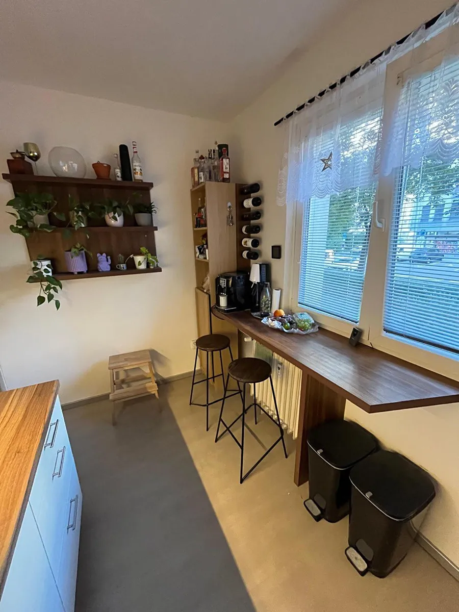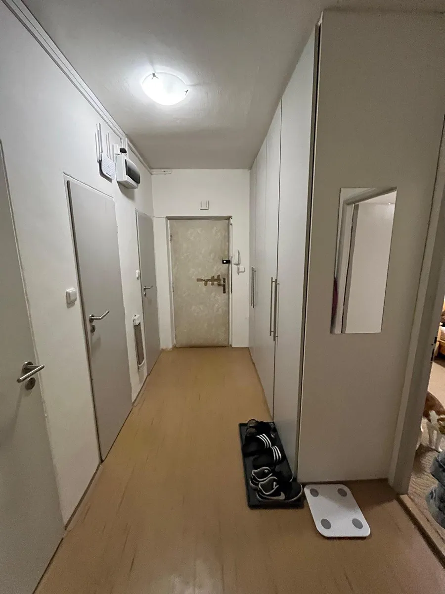 Částečně zařízený byt: kuchyň, pračka, vestavěná skříň v předsíni.