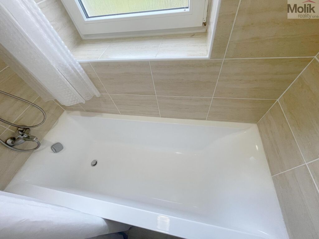 Samotný byt je zrekonstruovaný - nová koupelna s vanou, keramické obklady a dlažba, V kuchyni došlo k výměně a rozšíření kuchyňské linky.