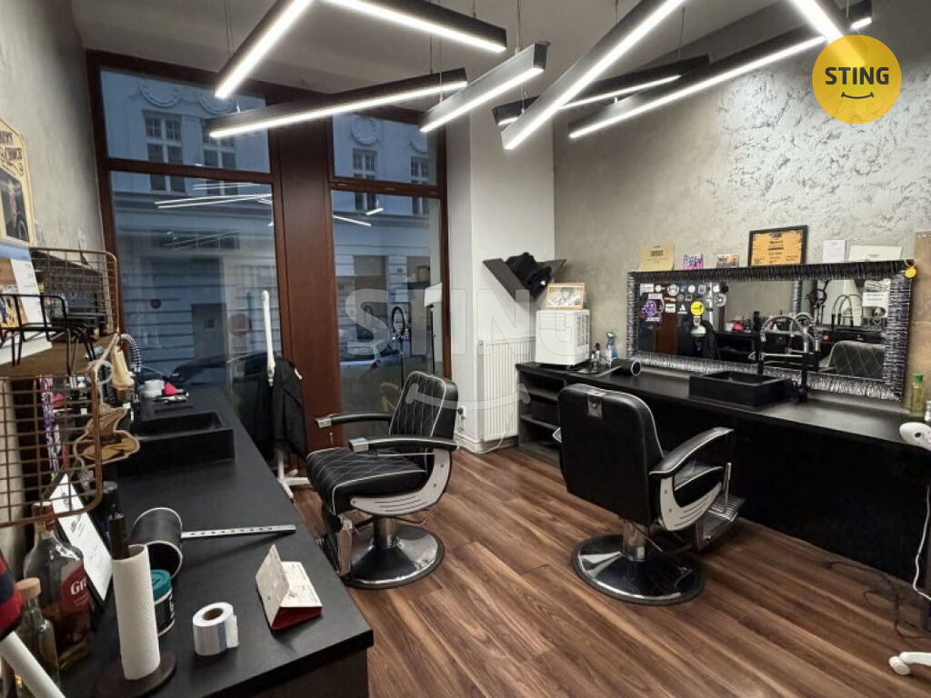 Prostor o velikosti 42,95 m² je vhodný pro podnikání v oblasti služeb, kosmetiky, kadeřnictví, barber studia, menší kanceláře, showroomu nebo ateliéru.