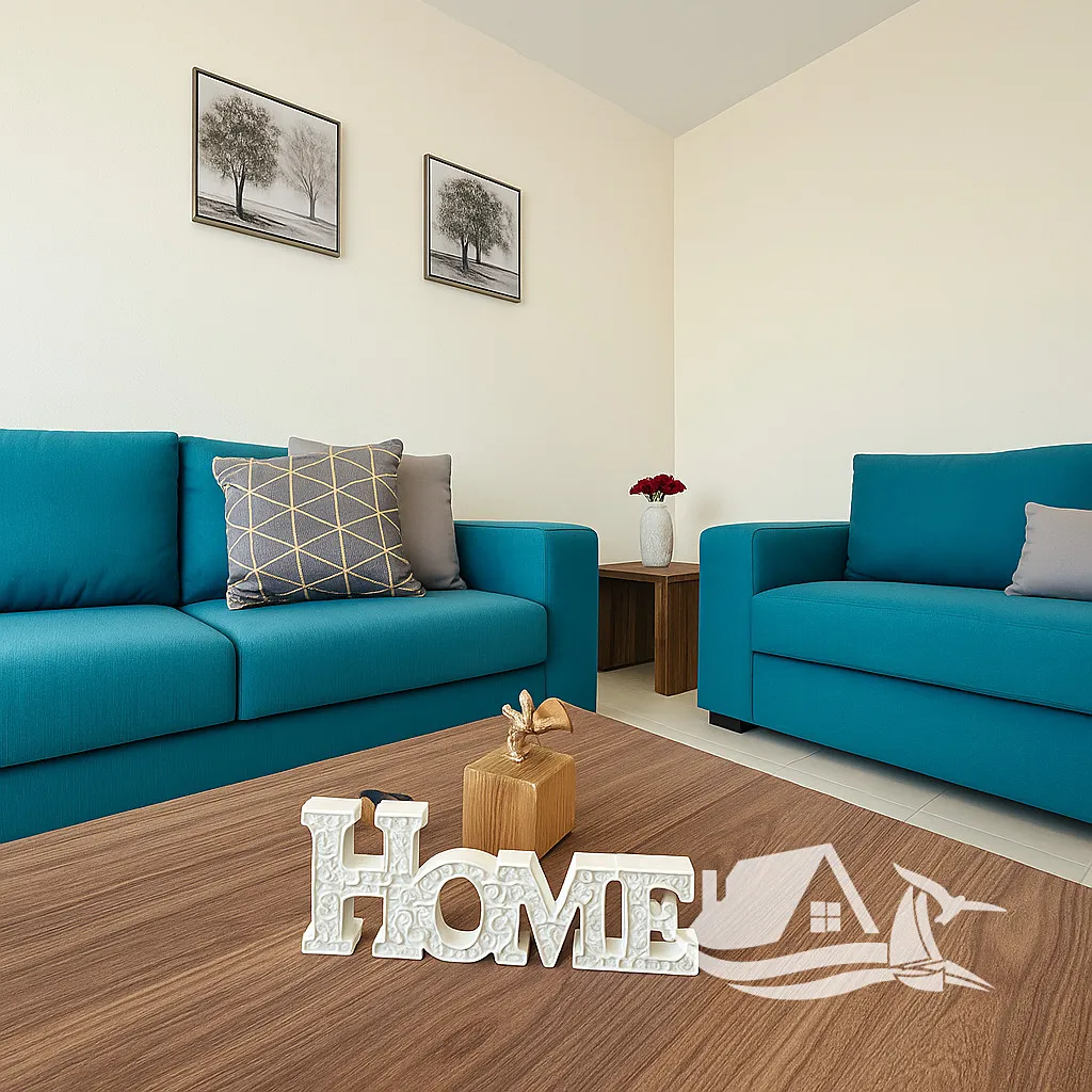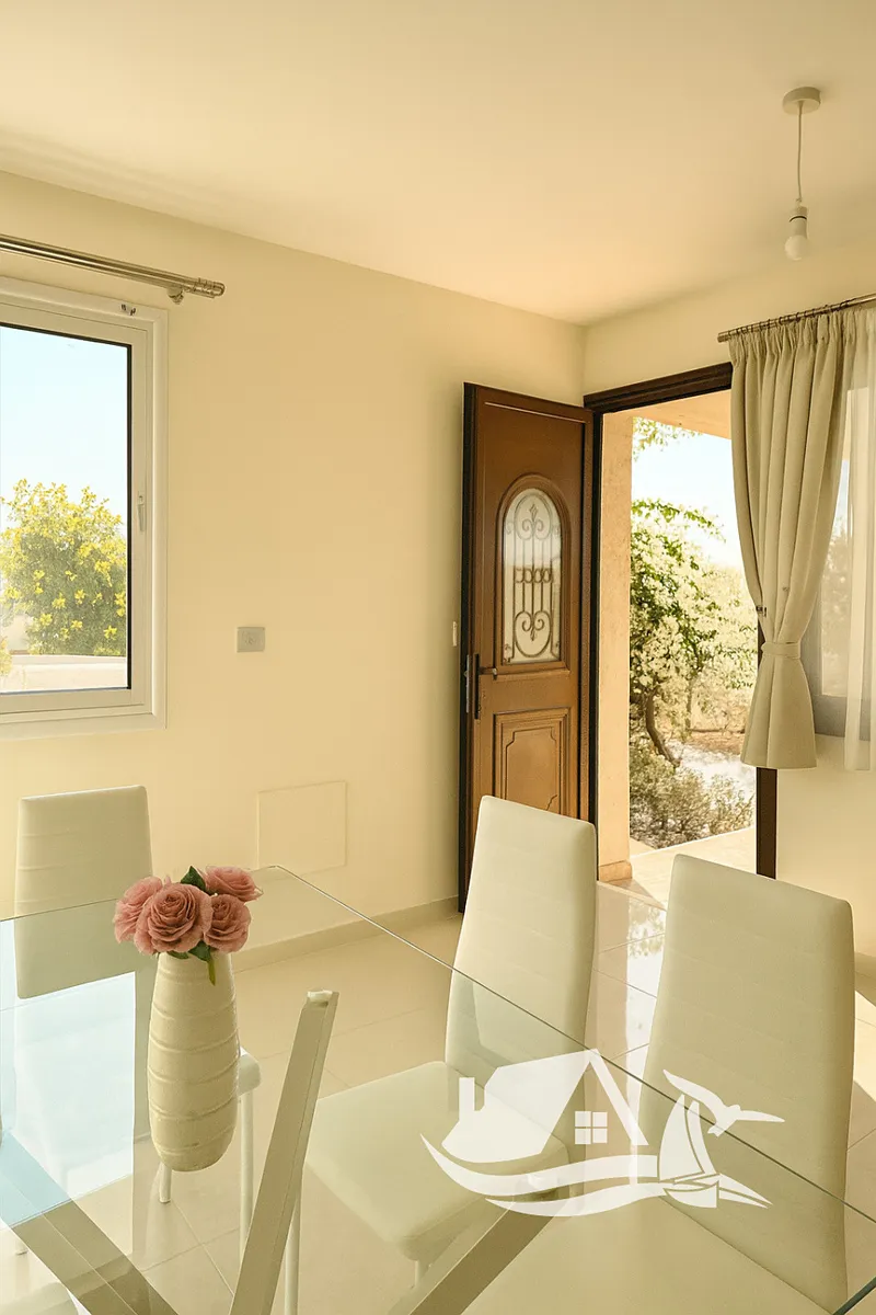 Interiér tvoří obývací pokoj s kuchyní, několik ložnic a tři koupelny, vybavené moderními prvky a elegantními detaily. Kuchyň se pyšní žulovými pracovními deskami, vestavěnými skříněmi a přípravou na klimatizaci.